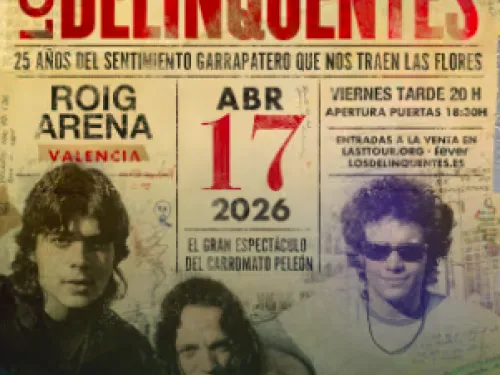 Los Delinqüentes arrive in Valencia to celebrate the 25th anniversary of their debut album, a cornerstone of contemporary Spanish music. This concert at the impressive Roig Arena will be the perfect chance to enjoy their unique blend of flamenco, rock, and reggae, and to relive the anthems that defined an entire generation. A must-see for all garrapateros. Tickets are limited, so don’t miss out!