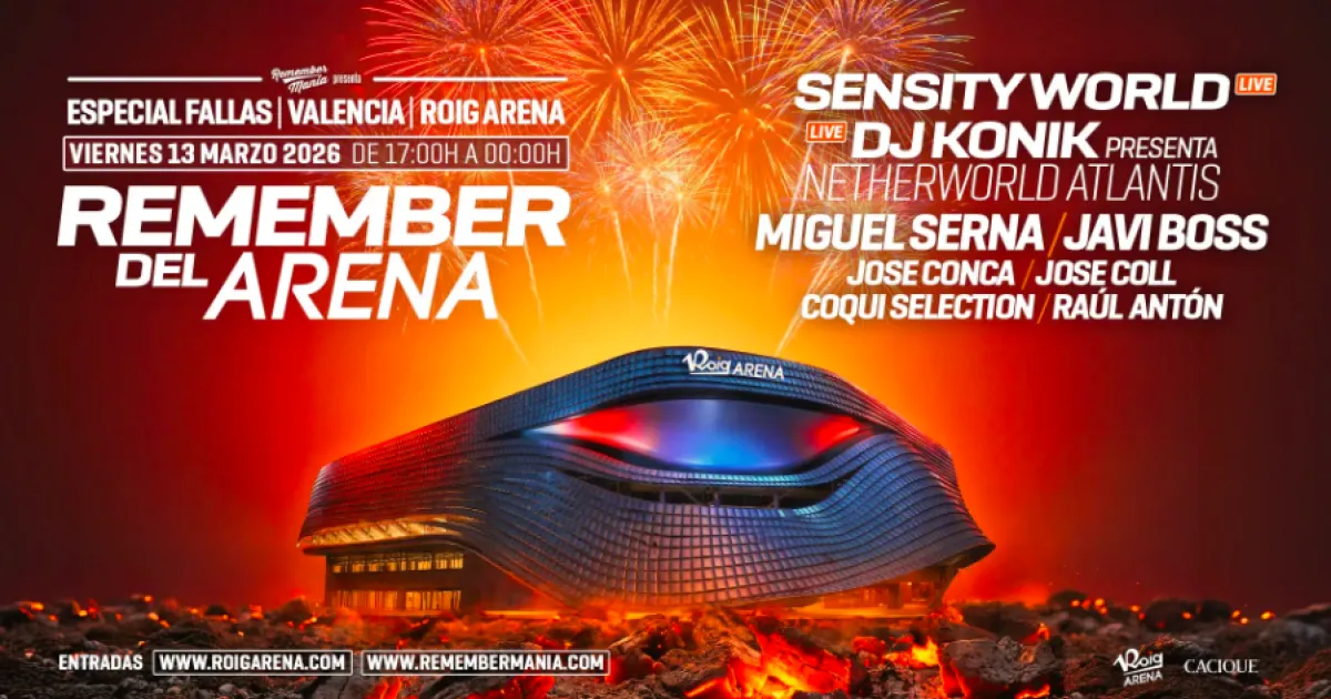 Roig Arena will host the Remember del Arena event on March 13 — a unique day that will bring together major figures of remember and electronic music. Created with the ambition of becoming the musical reference for the Fallas afternoon, the event will offer high‑level technical production along with state‑of‑the‑art sound and lighting.