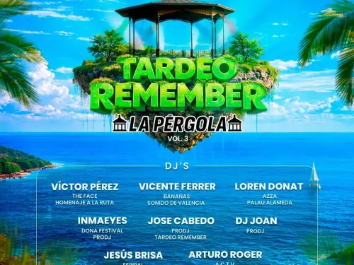 The Tardeo Remember series at La Pérgola is one of Valencia’s most popular open-air events, bringing together the best dance, techno, and "cantaditas" from the 90s and 2000s. Set right against the Mediterranean Sea, it offers a high-energy afternoon atmosphere.