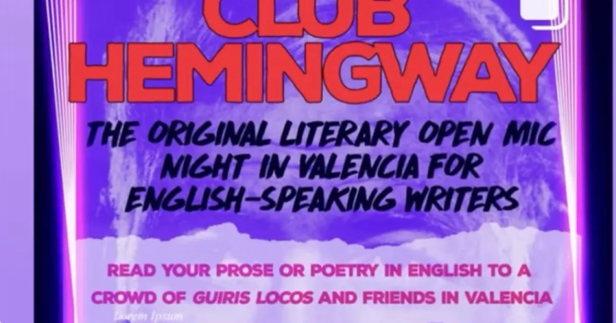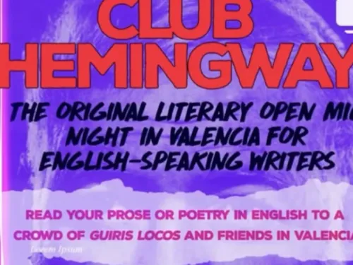 Club Hemingway is the original and free to enter American-style literary open mic event for English-speaking writers who live in Valencia to come and read their work aloud to a crowd of friendly listeners. Cocktails, seats, air con and a full bar available. Turn up with your piece or poem to read of about 3 minutes, put your name in the bowl, get a chupito or three, and wait to be called to the stage! Members from around the world, of all ages and levels have made lasting friendships at our events! Doors 6.30pm for a 7pm start, hosted by published author Cate Baum. All welcome to join in. LGBTQIA+ friendly, refugee friendly, nervous nelly friendly, beginner friendly! If you have a favourite poem by someone else, feel free to read that too. Literature appreciation friendly!