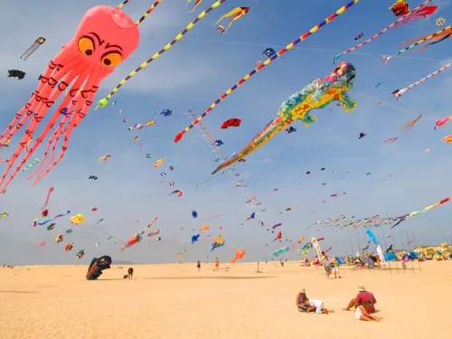 Weather permitting, the event will take place in front of the seafront promenade, in an impressive 15,000 m² flying area. This space will be filled with colours dancing to the rhythm of the wind with kites of all kinds, including multi-component, static, acrobatic, giant and 3D kites.