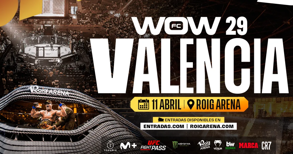 WOW 29 Valencia is a premier Mixed Martial Arts (MMA) event scheduled for Saturday, 11 April 2026. Produced by The Way of Warrior FC (WOW FC)—a promotion co-owned by UFC champion Ilia Topuria and footballer Cristiano Ronaldo—this event marks the promotion's first major show in Valencia.
